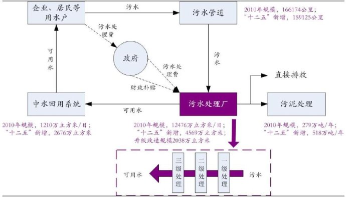 (2) 污水管道從2010年的16億公里上升到31億公里,污水供給量會(huì)相應(yīng)提高,小城鎮(zhèn)污水處理市場(chǎng)抬頭。