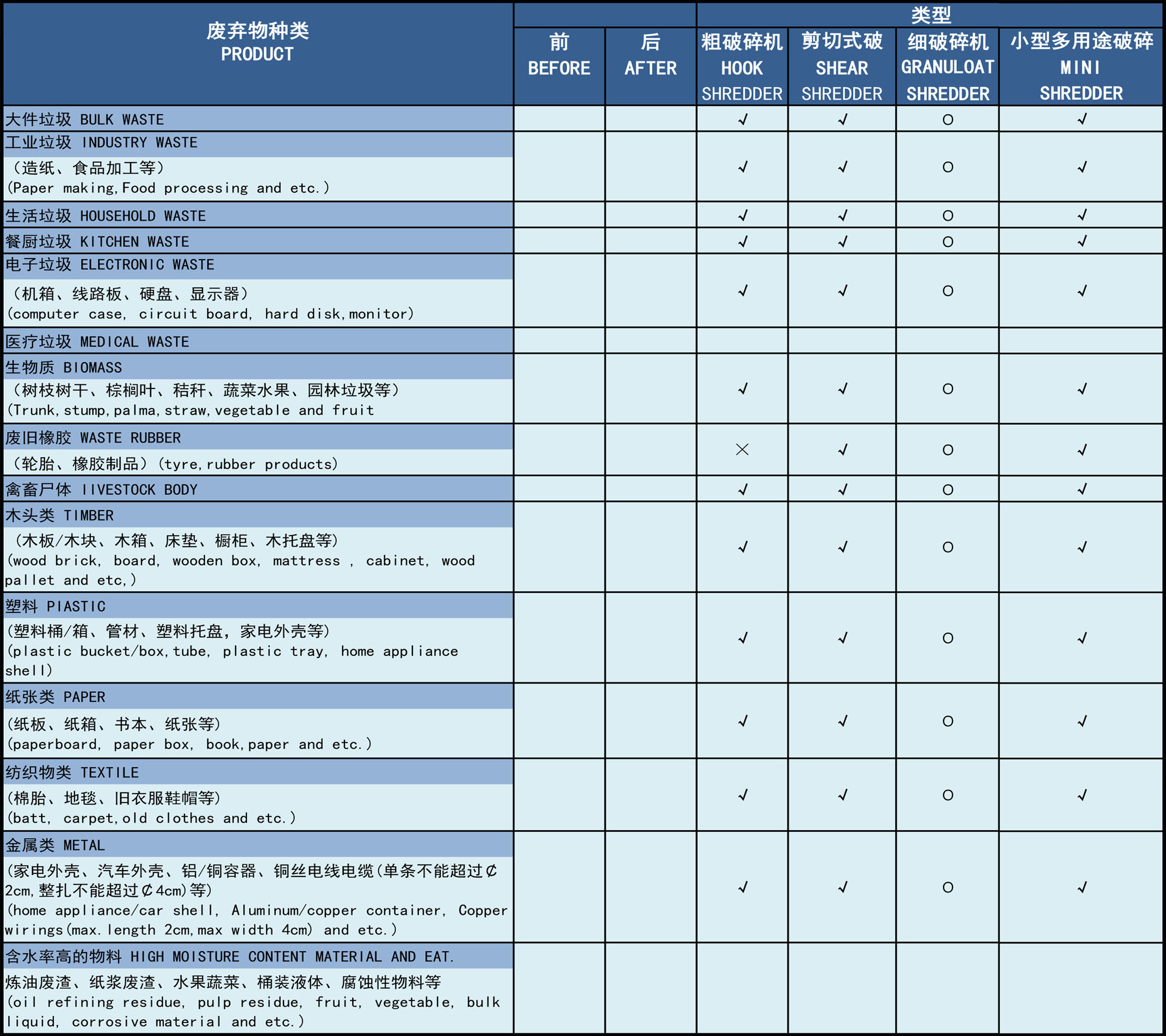 破碎廢棄物種類